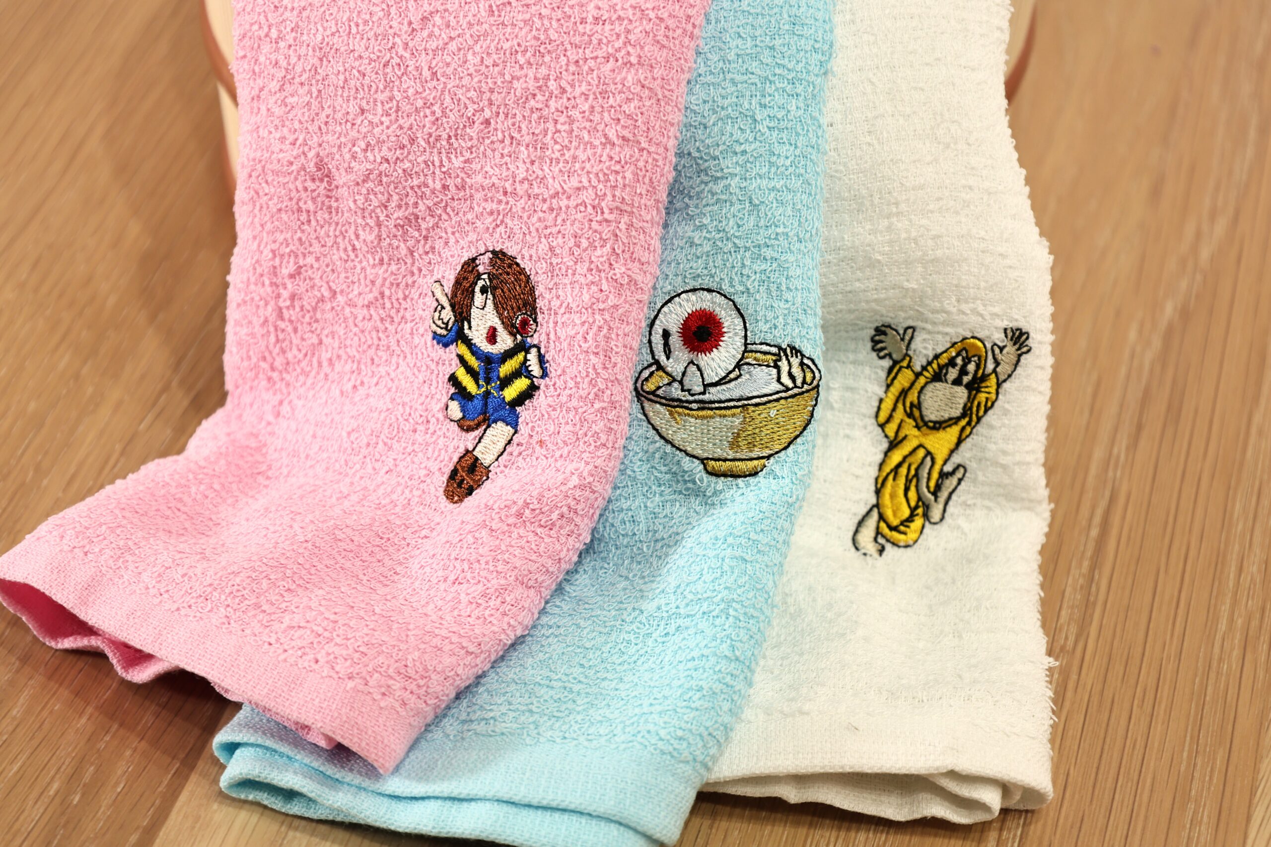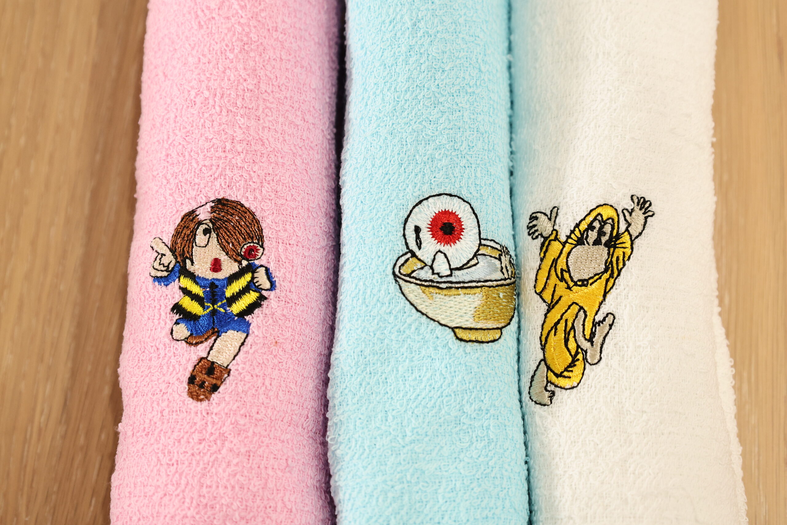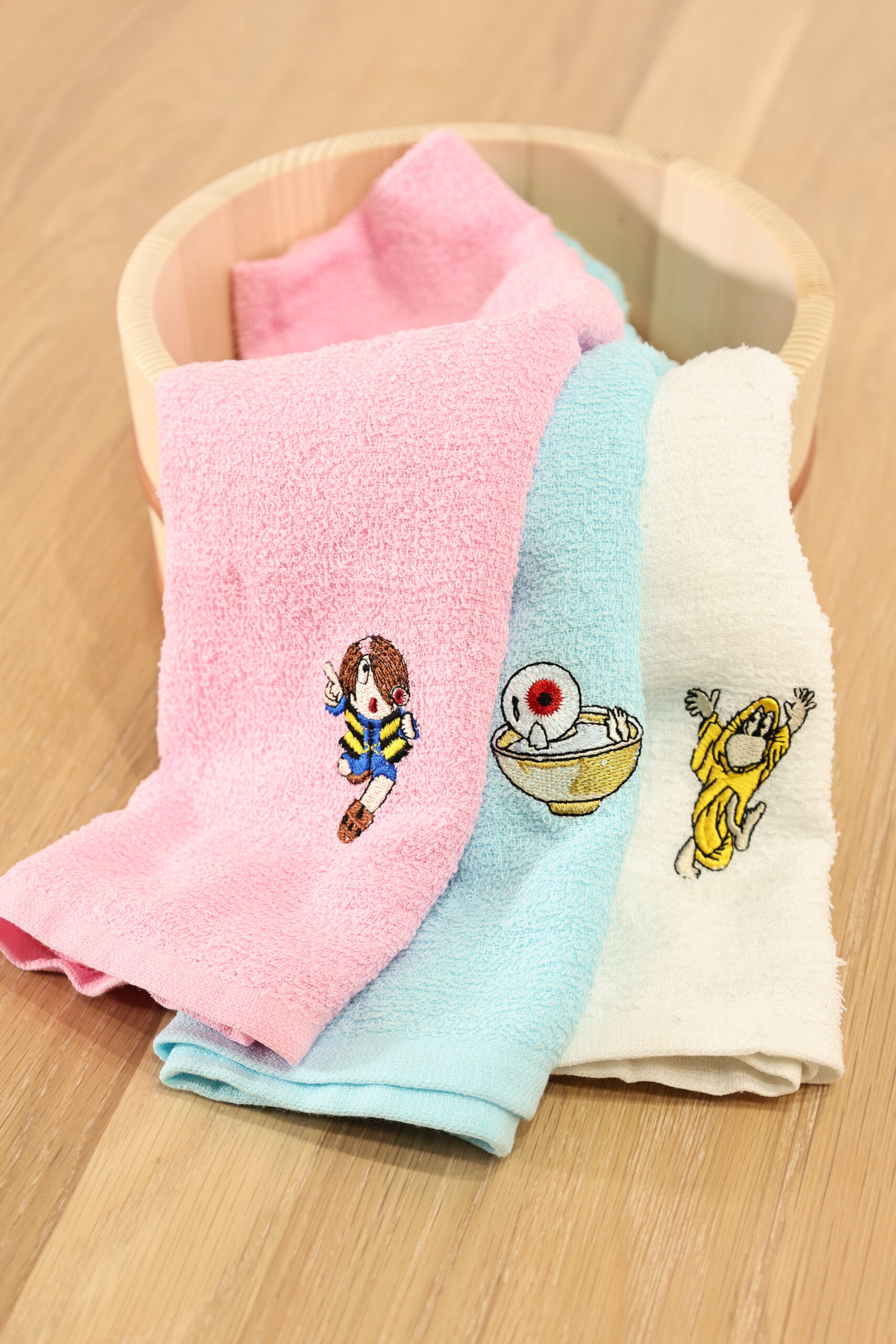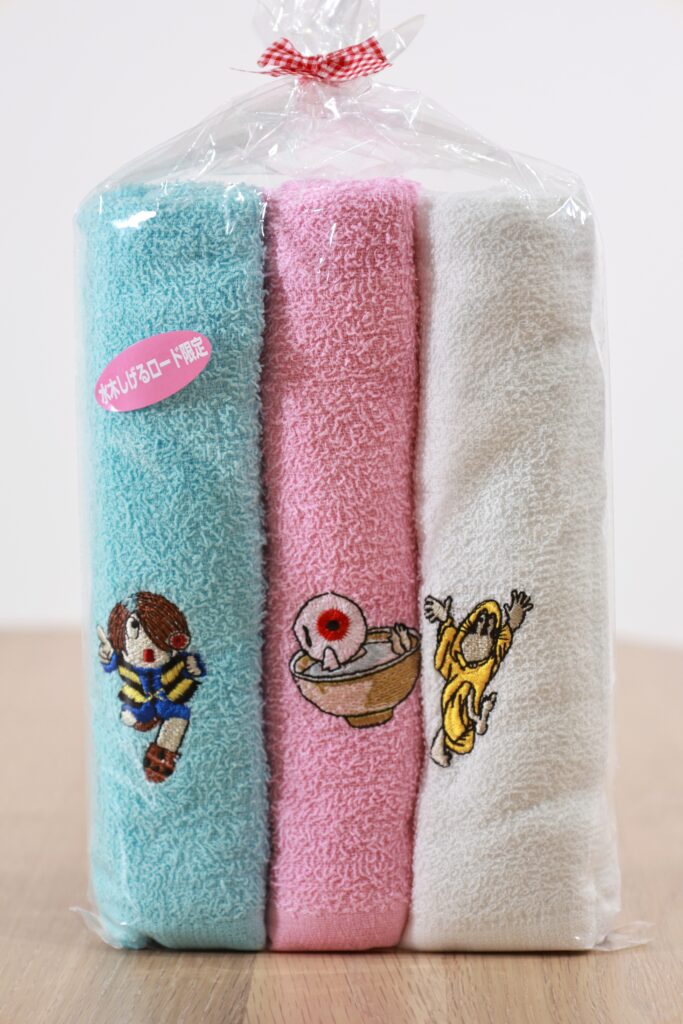 当社オリジナルの「鬼太郎・目玉おやじ・ねずみ男」の刺繍入りフェイスタオル!