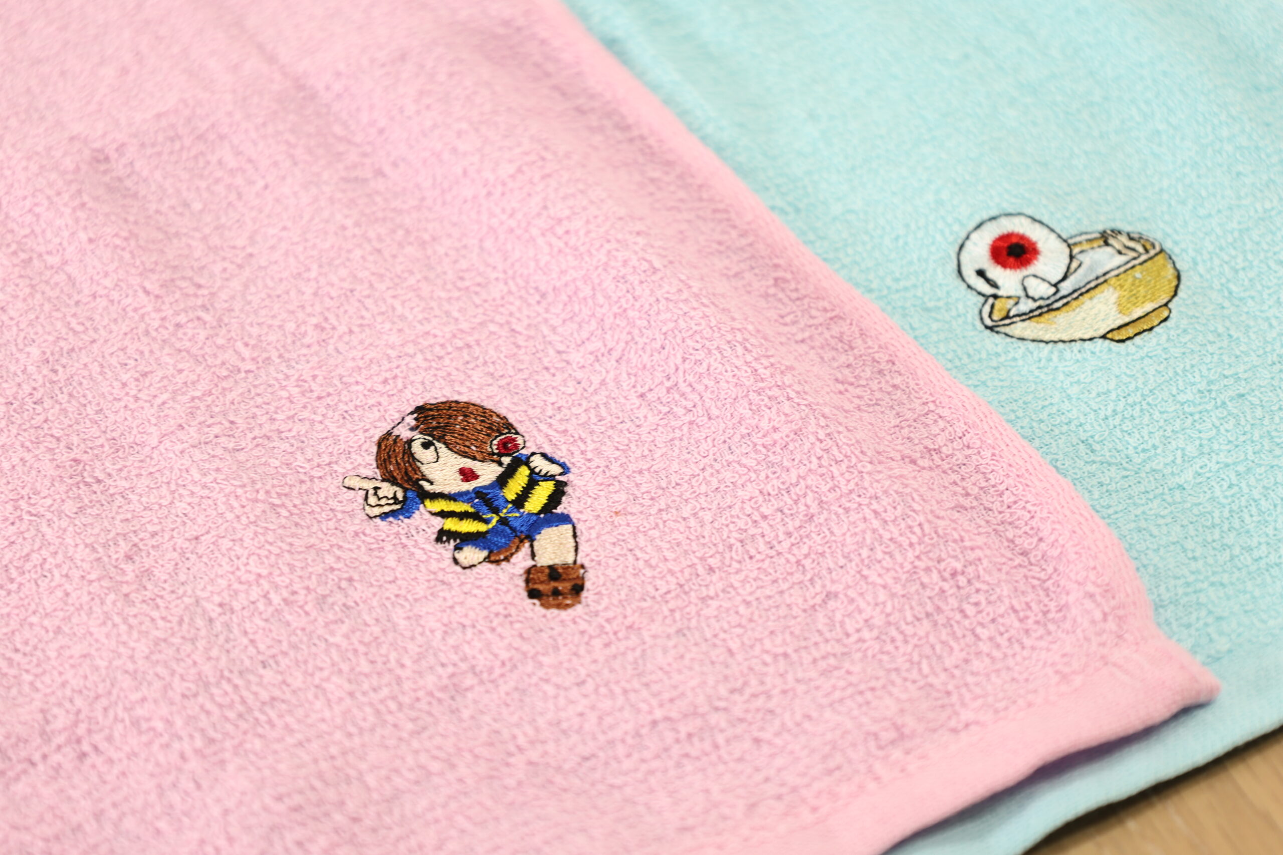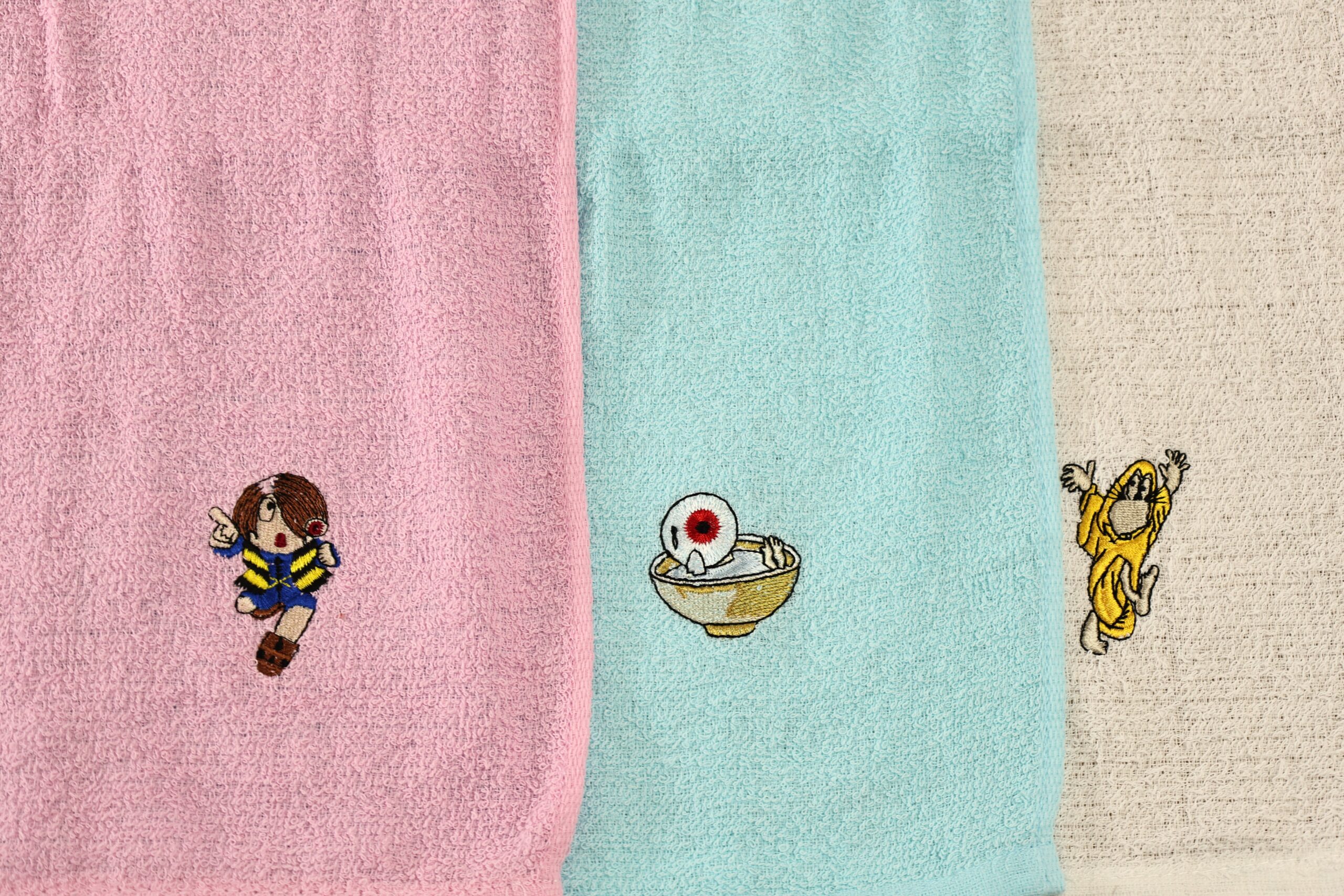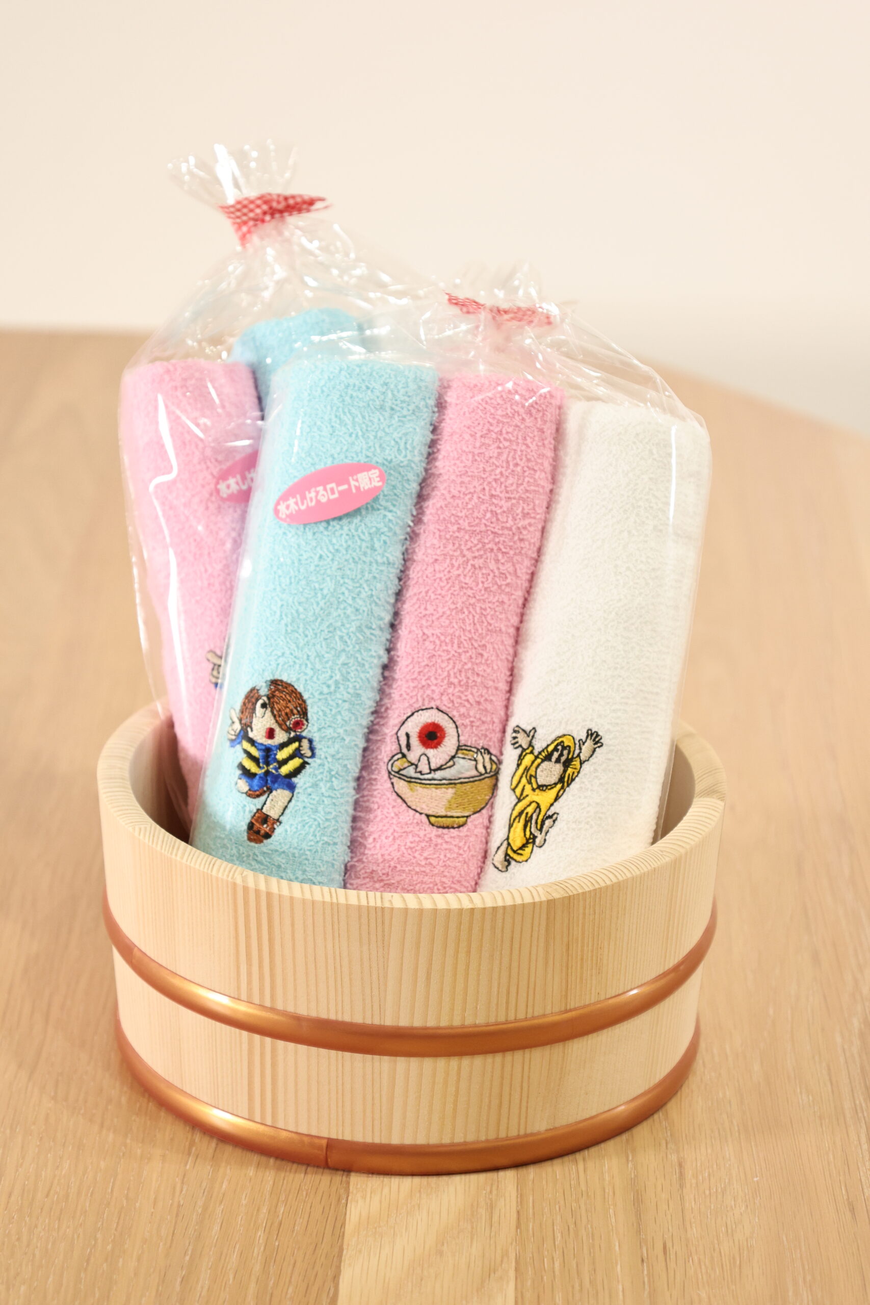 当社オリジナルの「鬼太郎・目玉おやじ・ねずみ男」の刺繍入りフェイスタオル!