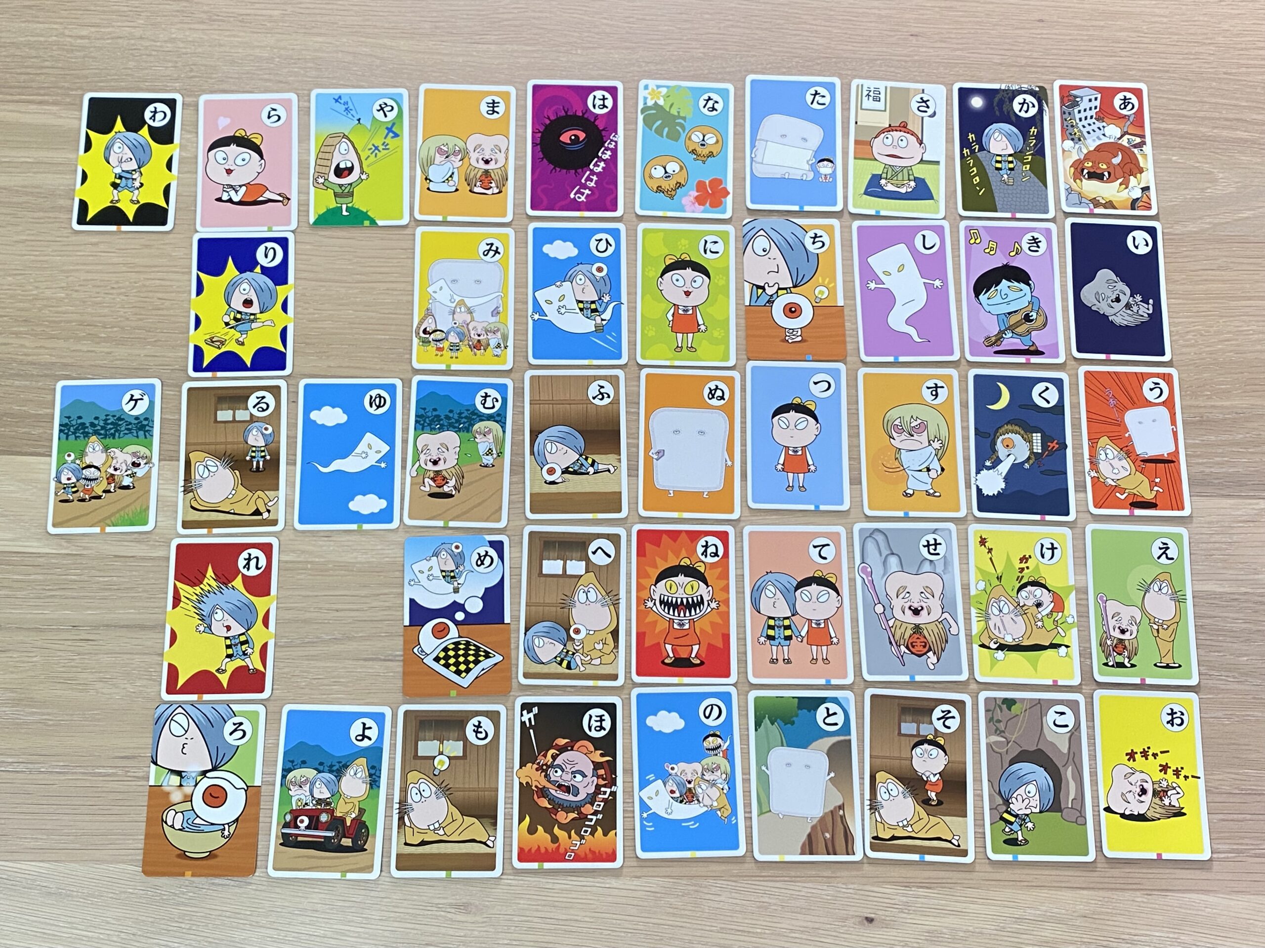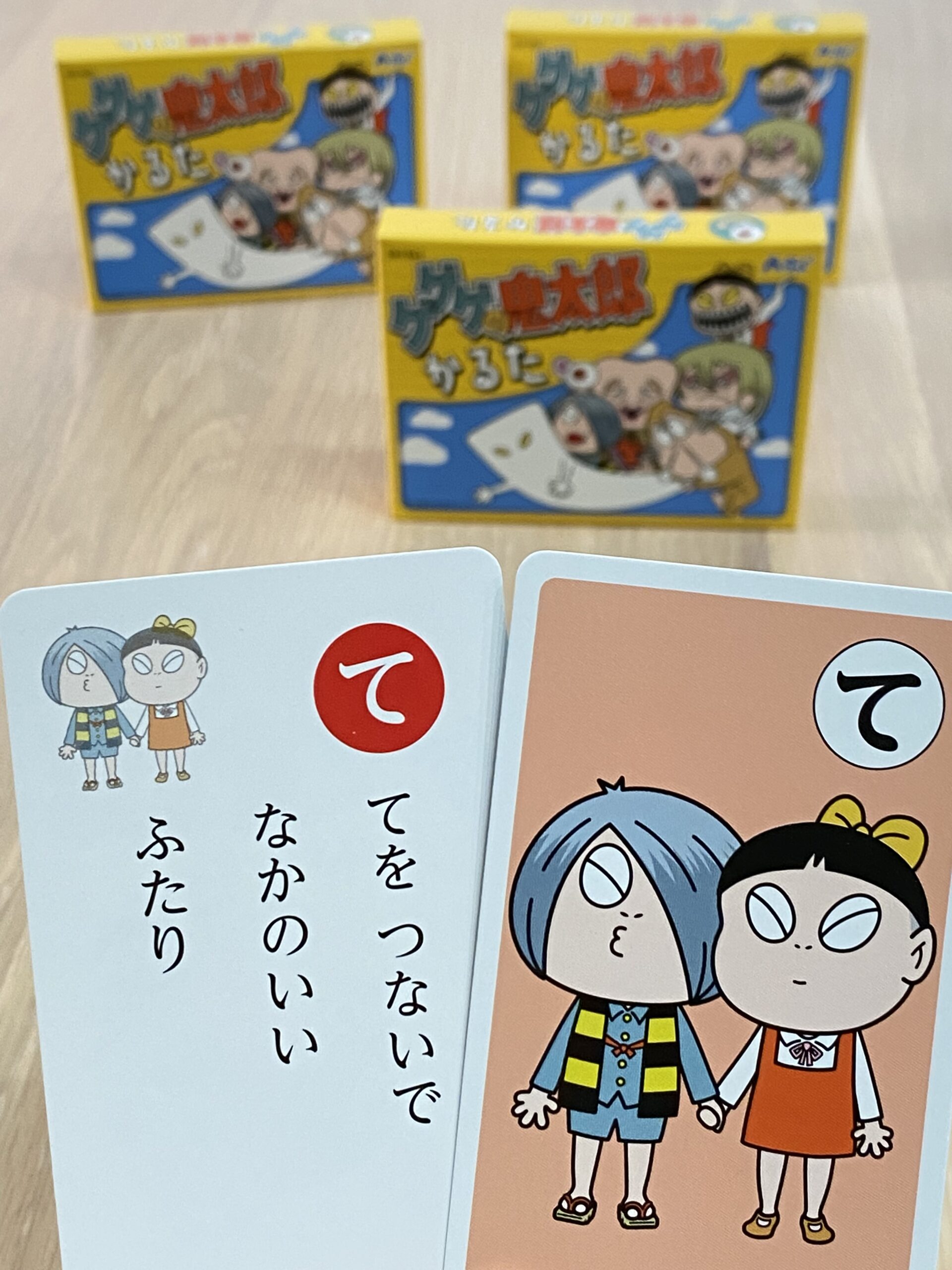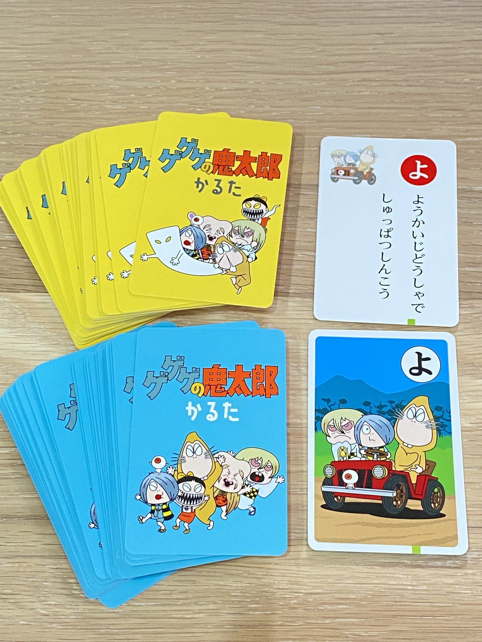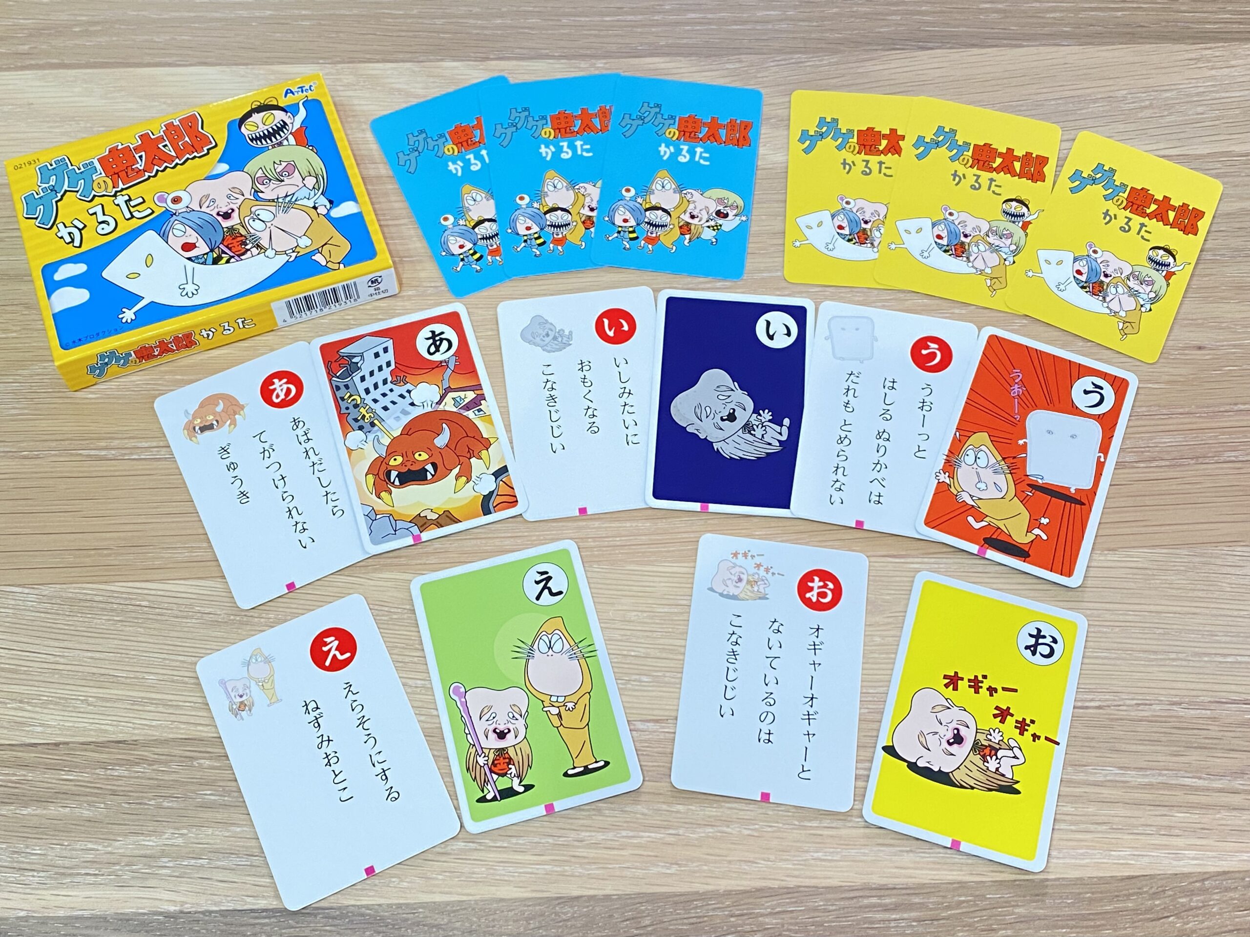 デフォルメデザインの可愛い鬼太郎たちのイラストが描かれた「ゲゲゲの鬼太郎かるた」