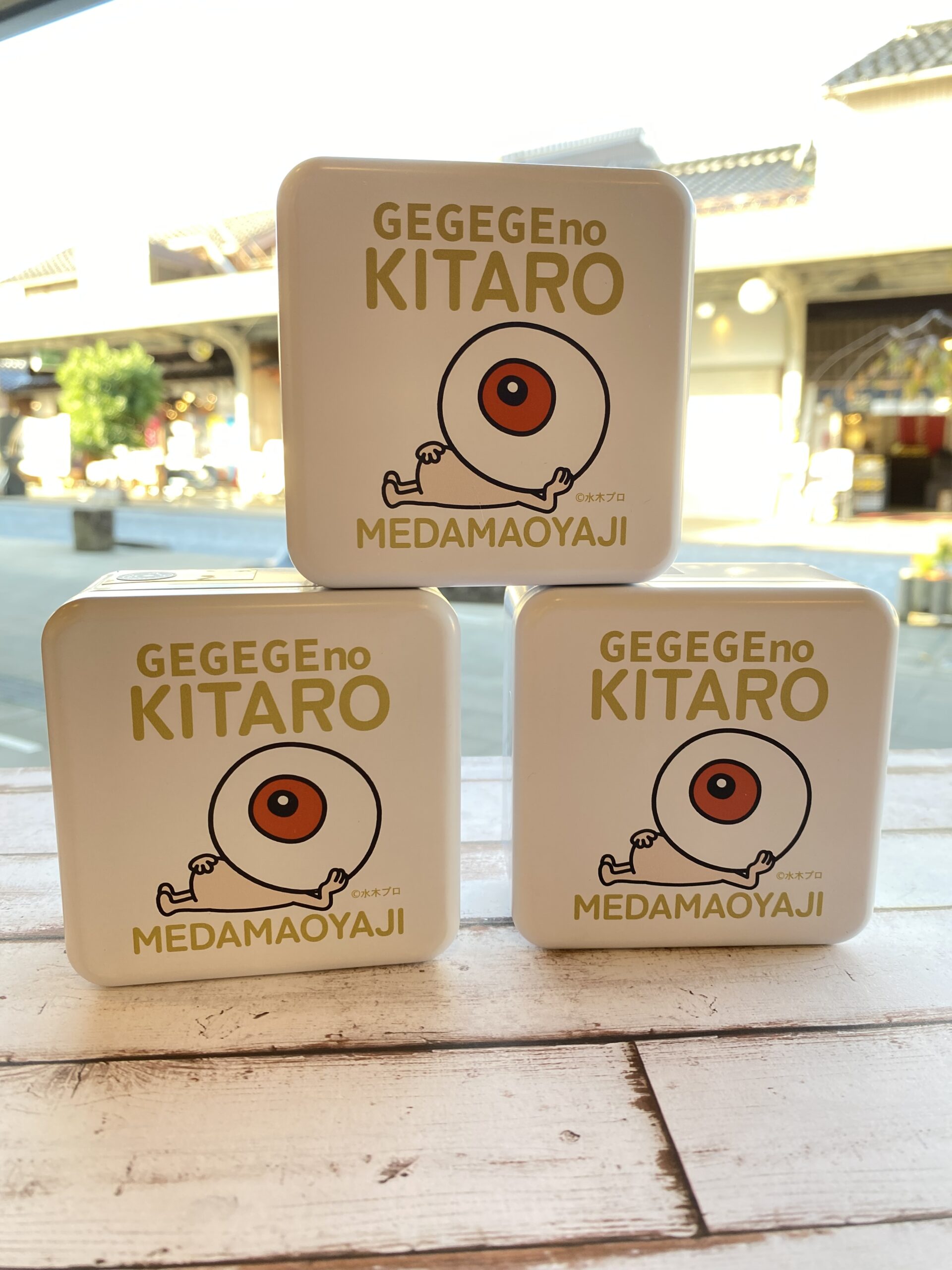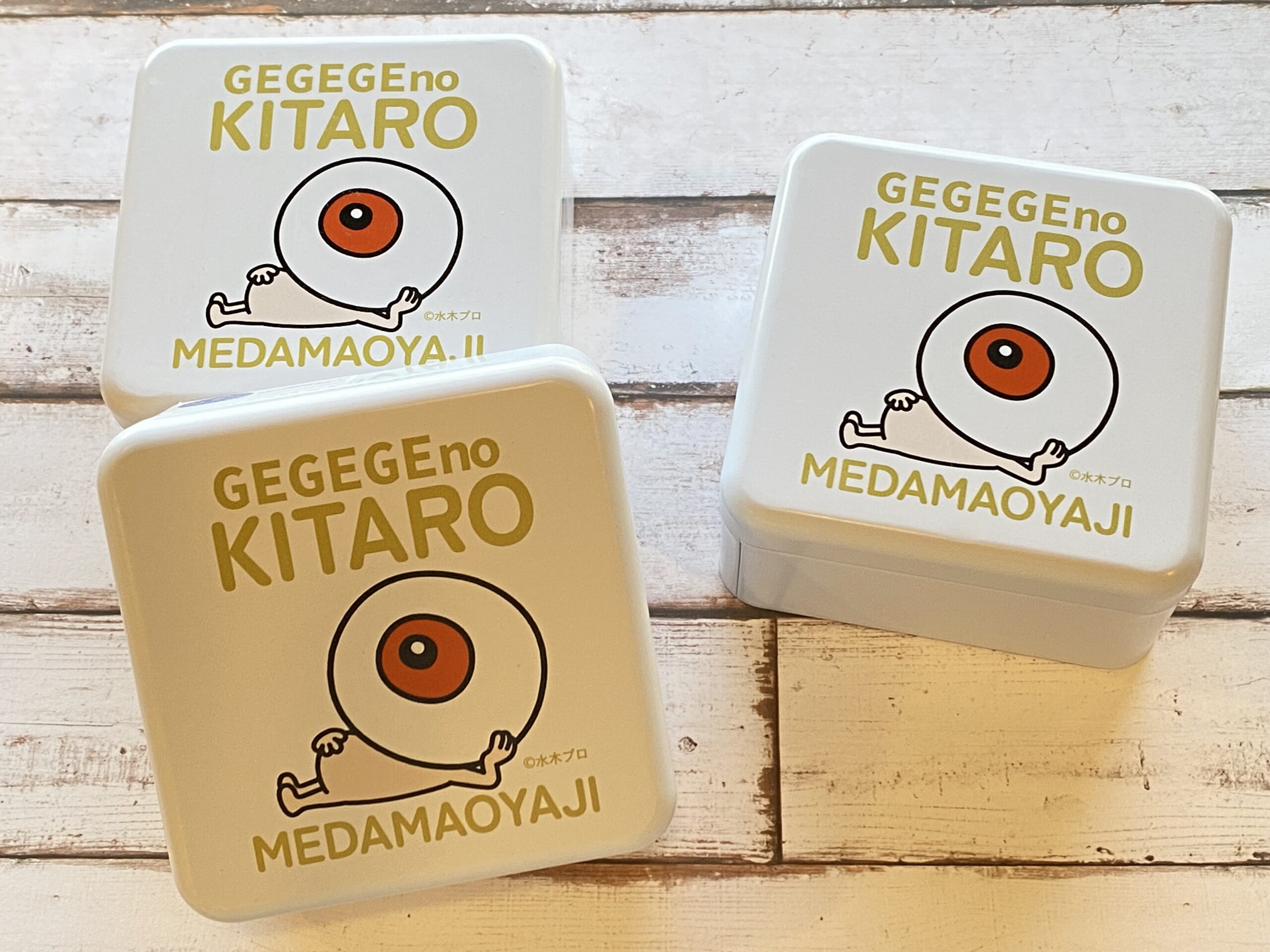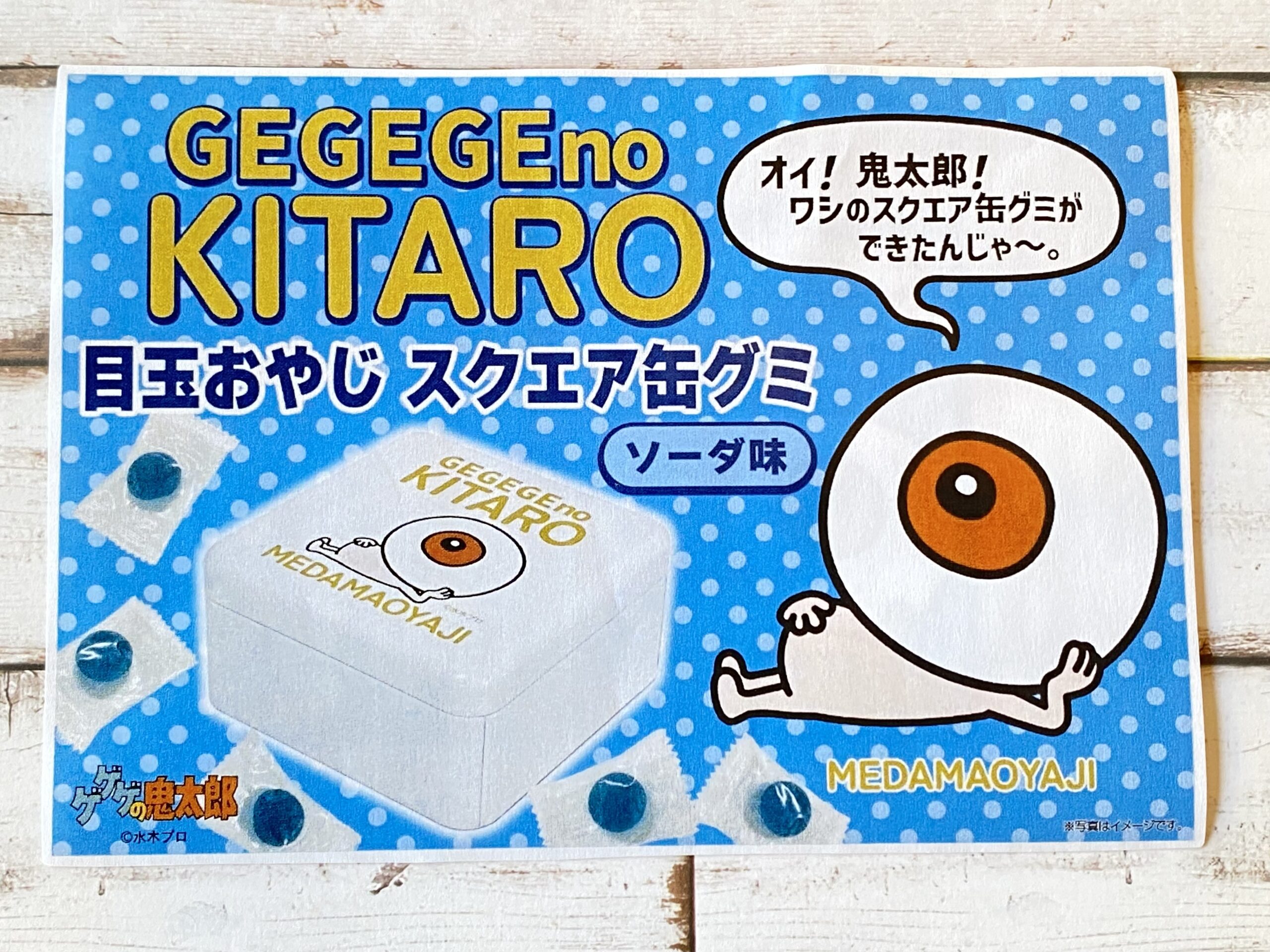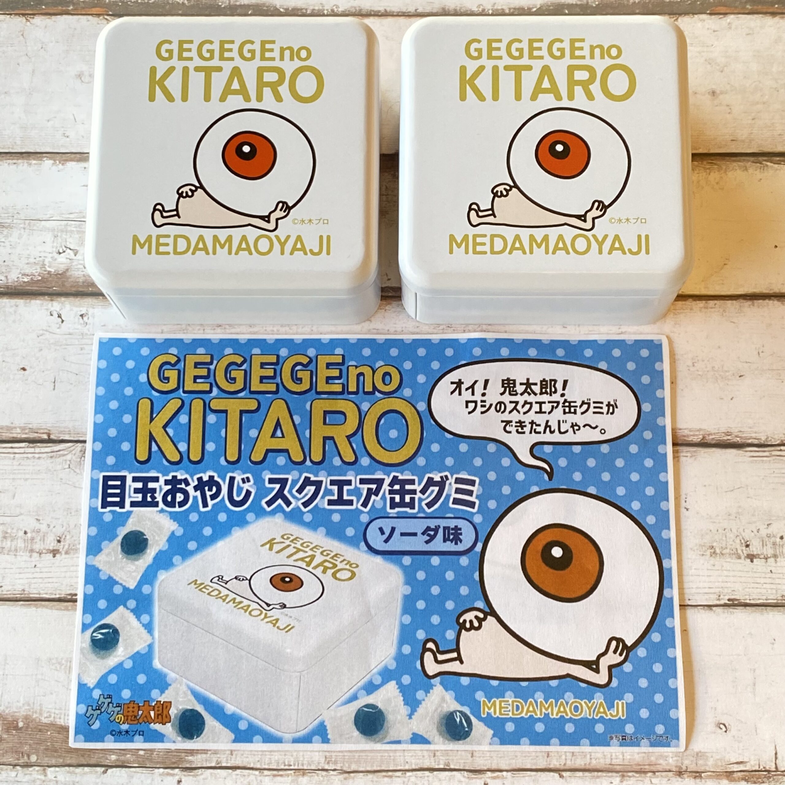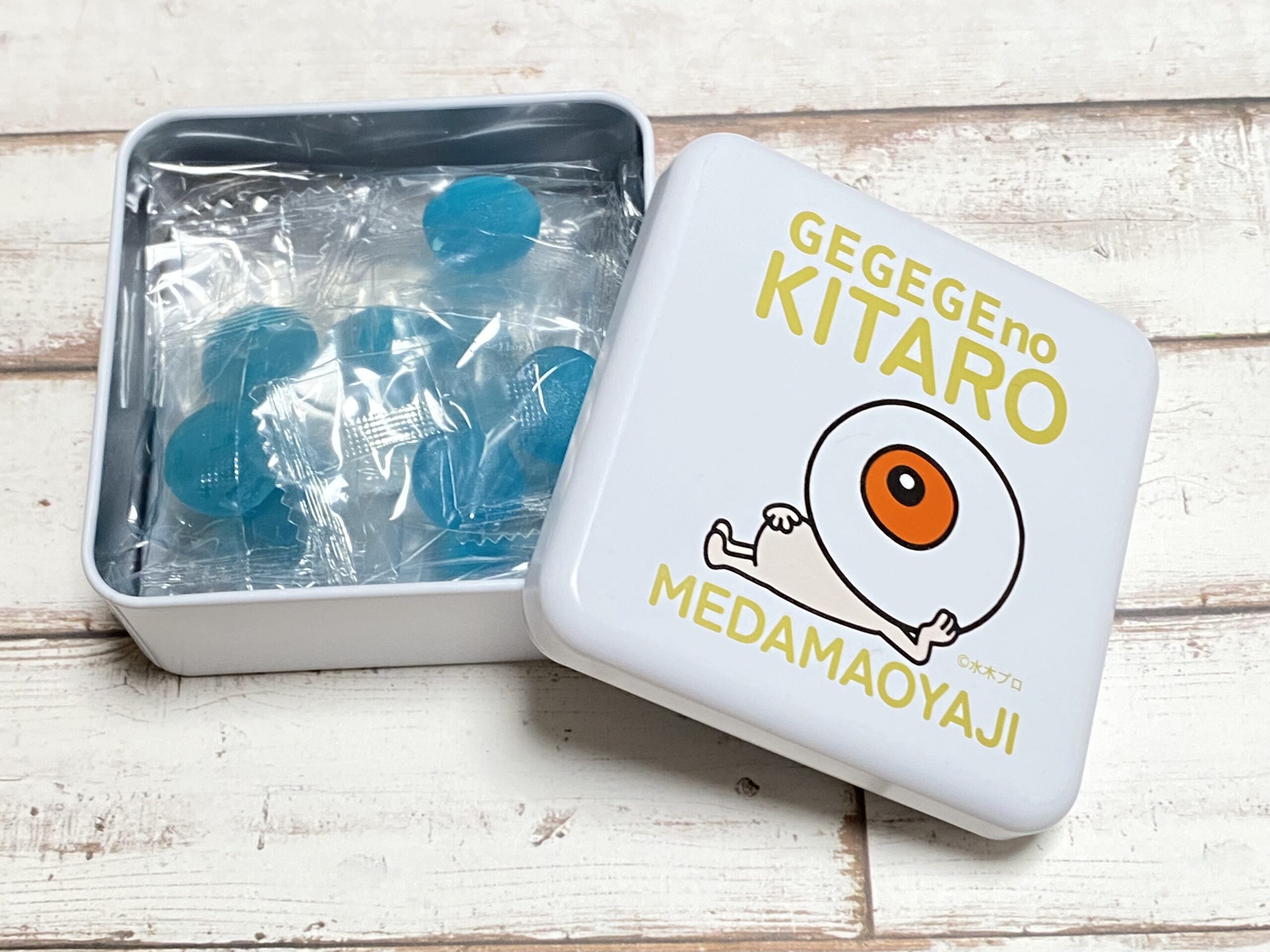 デフォルメデザインの可愛い目玉おやじのイラストが描かれた「目玉おやじスクエア缶グミ」