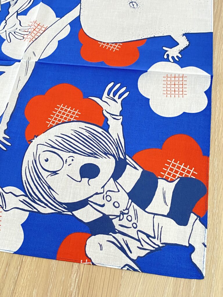 ハンカチの鬼太郎、ねこ娘、ぬりかべ、ねずみ男の全身を描かないことで、妖怪たちが生き生きと感じられる大判サイズならではのダイナミックなデザインです
