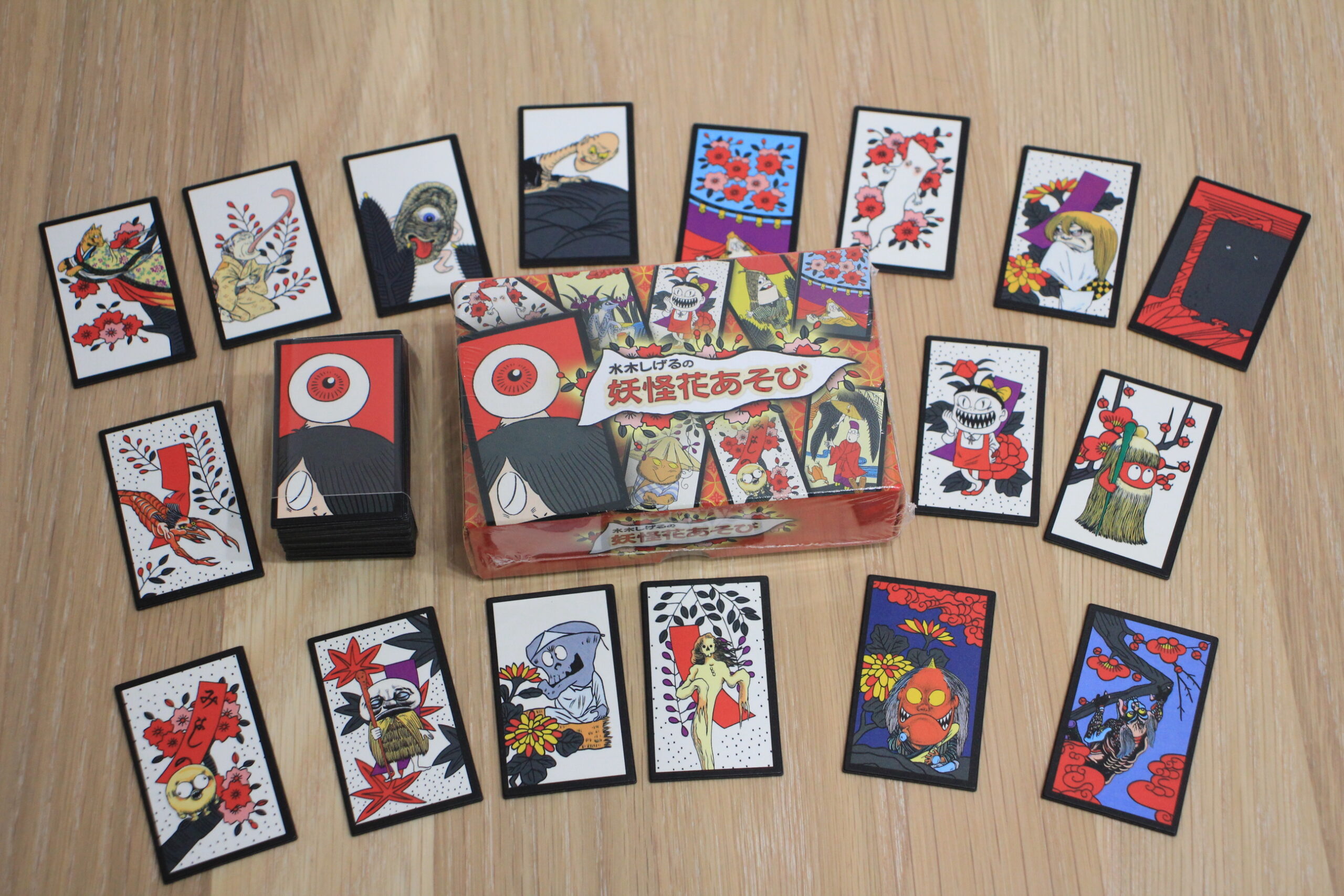 登場する妖怪は漫画界の巨匠・水木しげる氏の作品より選ばれたもの。花札としても遊べるほかオリジナルのゲームも楽しめます。