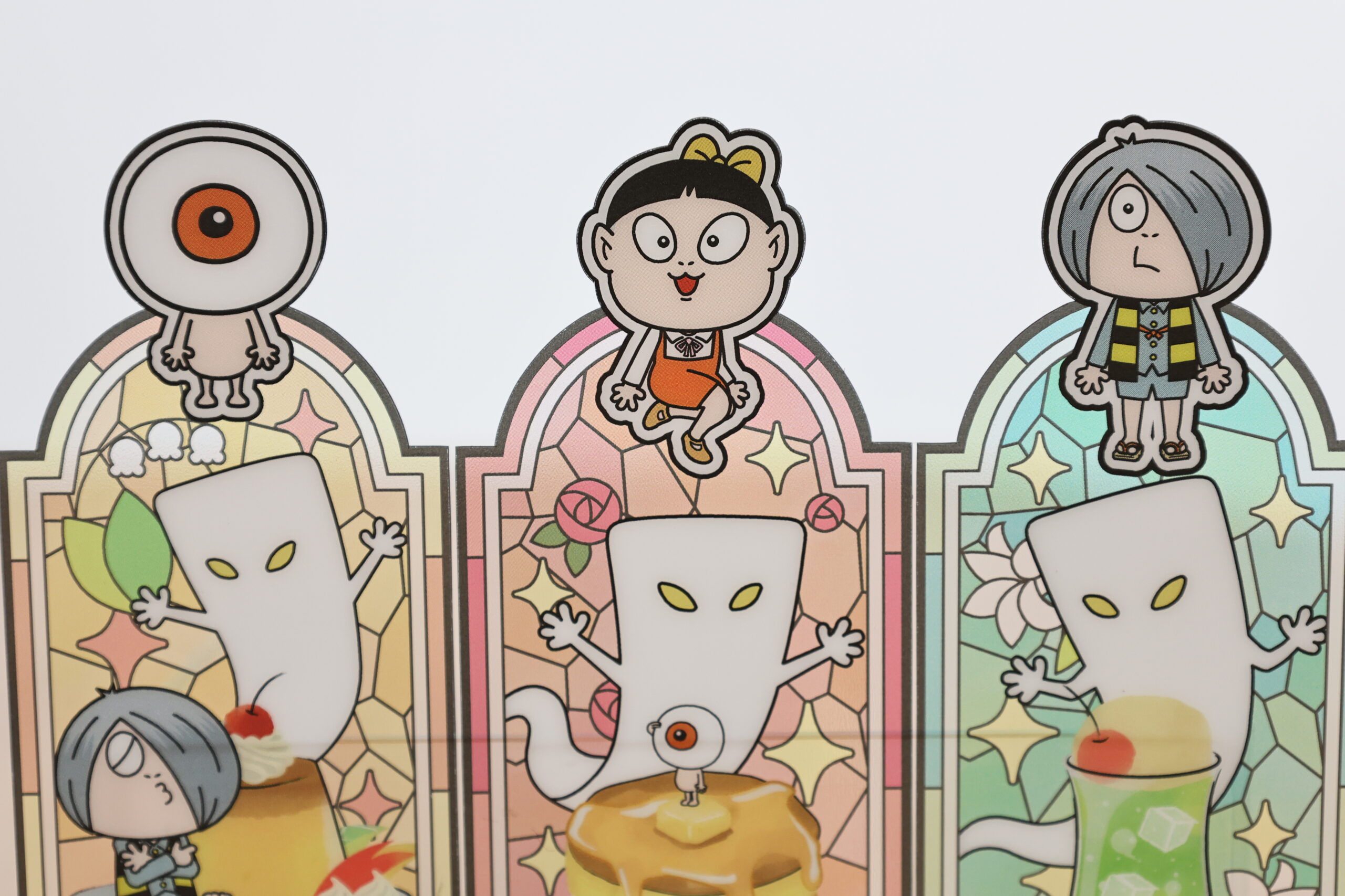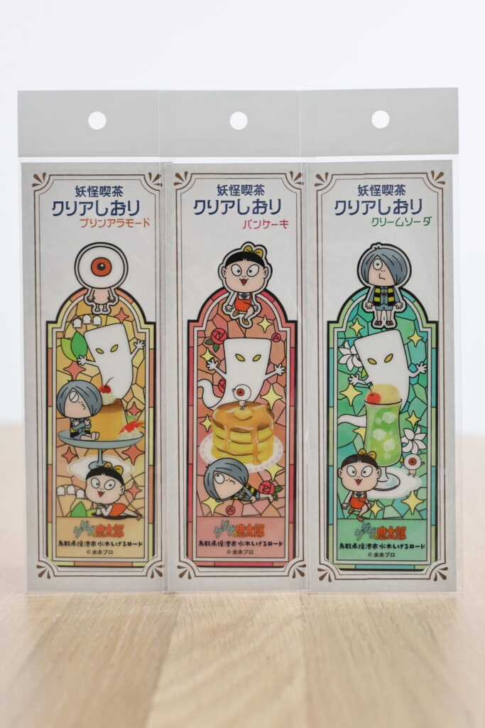 クリームソーダ、パンケーキ、プリンアラモードの喫茶メニューと鬼太郎たちとステンドグラスの昭和レトロデザイン♪