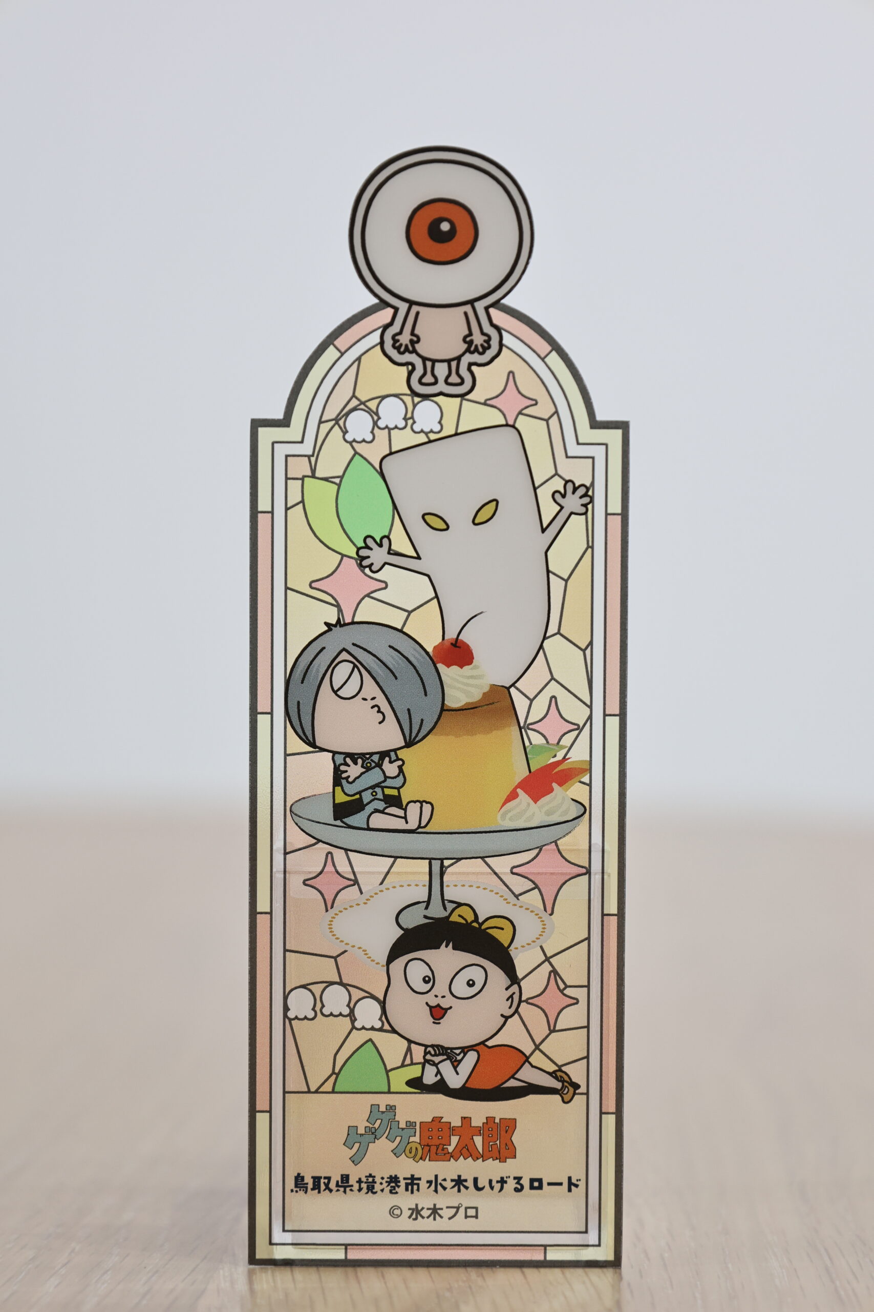 クリームソーダ、パンケーキ、プリンアラモードの喫茶メニューと鬼太郎たちとステンドグラスの昭和レトロデザイン♪