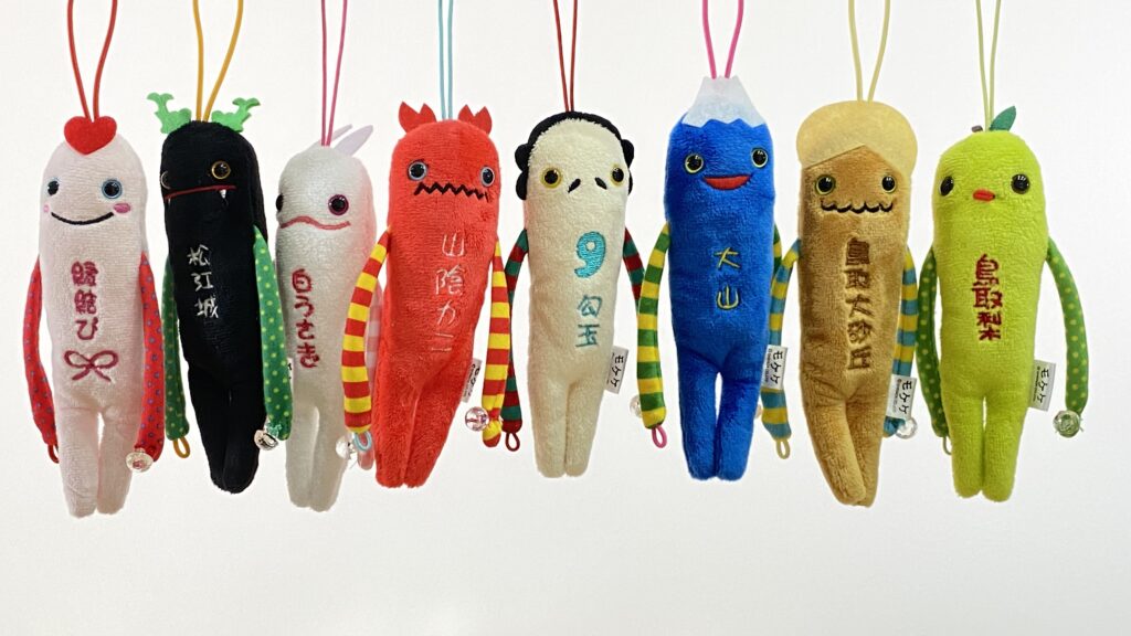 鬼太郎グッズのほかに、鳥取・島根・山陰限定の「ご当地モケケ」も販売中!