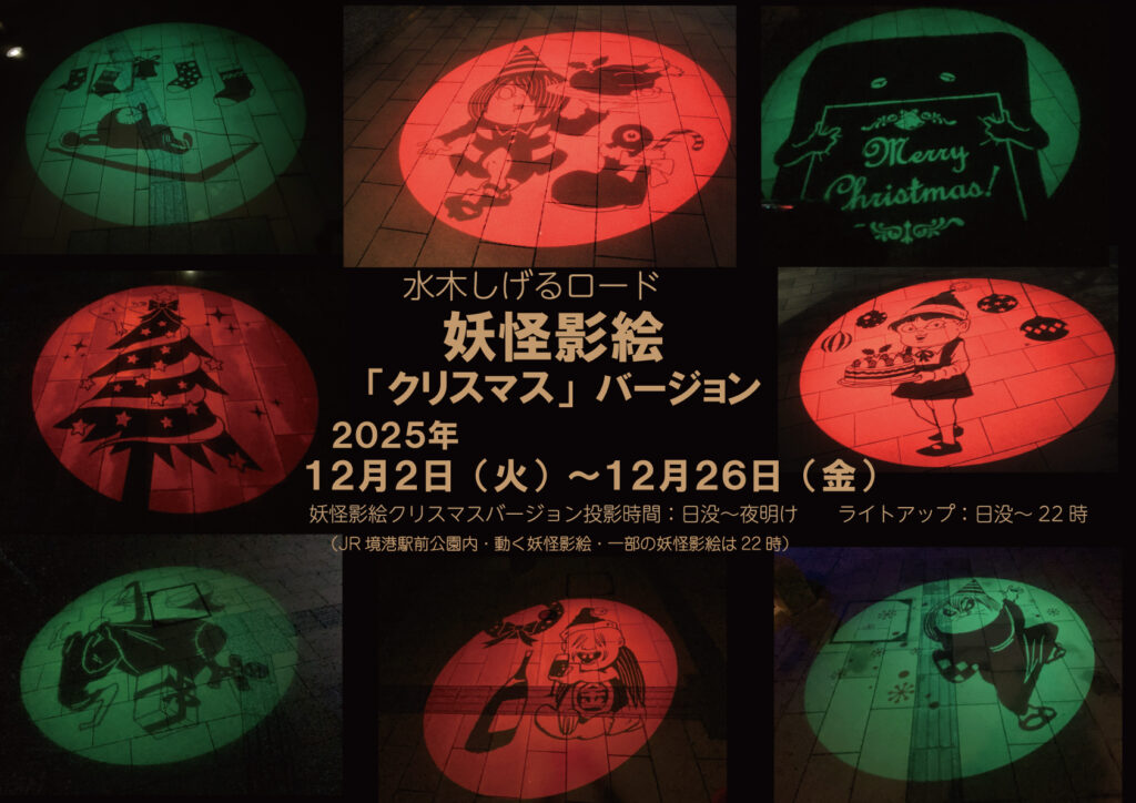 今年も、夜の水木しげるロードで「クリスマスバージョン」の妖怪影絵の投影が始まります♪