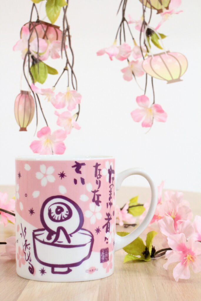 目玉おやじがお花見を楽しんでいるようなマグカップとガーゼタオル!