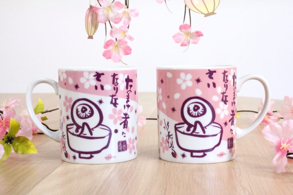 目玉おやじがお花見を楽しんでいるようなマグカップとガーゼタオル!